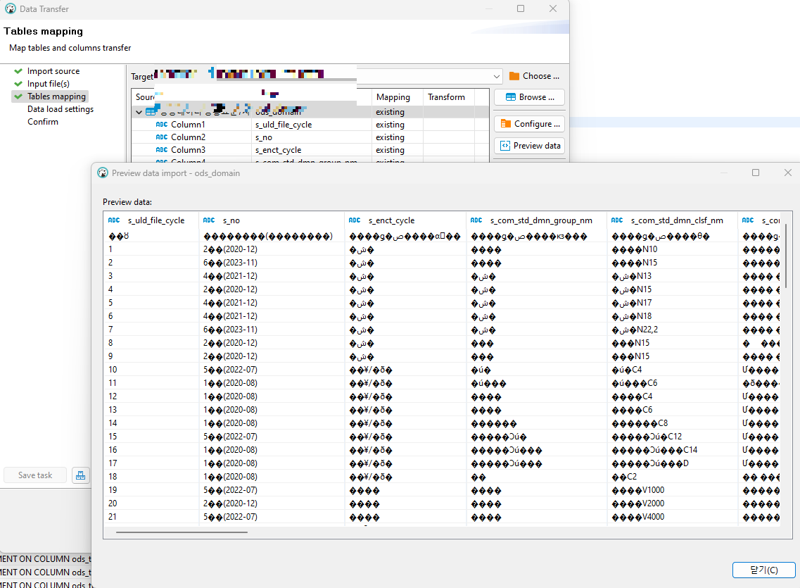 csv 파일 데이터를 업로드하려는데 Preview data를 보니 한글이 전부 깨져 있었다.